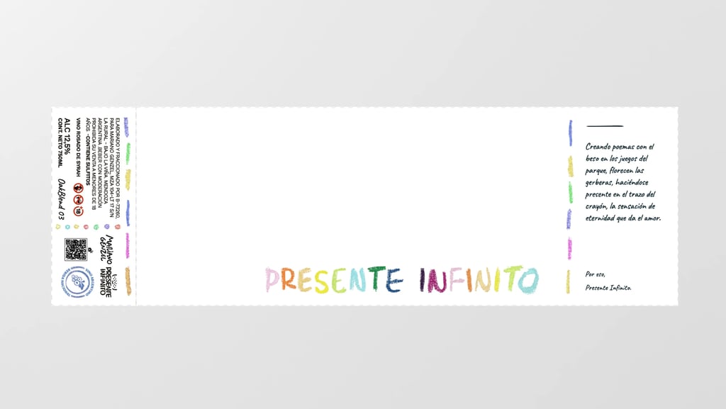 Presente Infinito es un vino de partida limitada que busca plasmar la profundidad de lo vivido. Es la esencia de los sentimientos provocados por esa persona maravillosa que marcó un antes y un después; un homenaje a la pasión y a las experiencias.