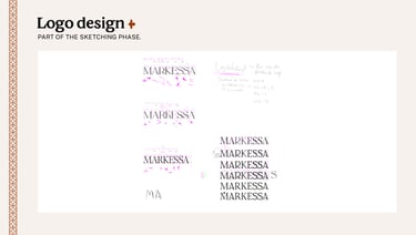 Tras varias rondas de búsqueda de nombre, análisis de la competencia, definición del tipo de logo y desarrollo de una tipografía propia nació la nueva identidad gráfica de MARKESSA. El resultado final combina las mejores alternativas tipográficas seleccionadas en el proceso, ajustadas y rediseñadas para asegurar la legibilidad incluso en tamaños reducidos. Al tratarse de un logo puramente tipográfico, incorporé un recurso visual en la “M” para darle carácter y diferenciarlo de otros signos similares. Ese detalle retoma la referencia al rango de la realeza —Marquess, en inglés— que inspiró el nombre y aporta un matiz distintivo dentro de la propuesta. Luego de finalizar el logo avanzamos con el resto de la identidad gráfica de la marca para aplicarla en tarjetas personales, catálogos digitales y publicaciones en Instagram.